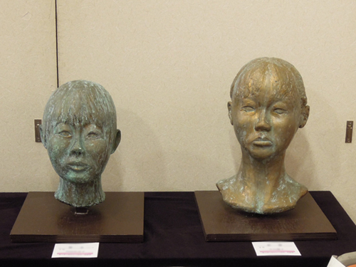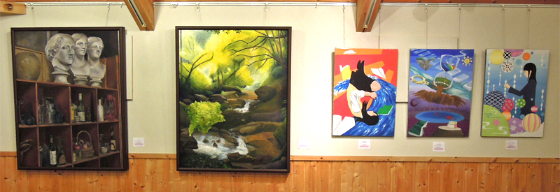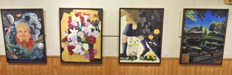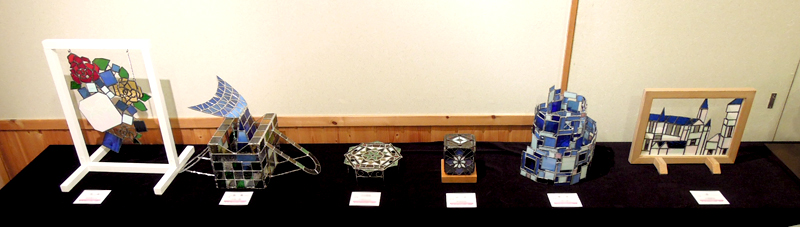 壁面には美術部部員による絵画や彫刻、ステンドグラスが展示されました。
