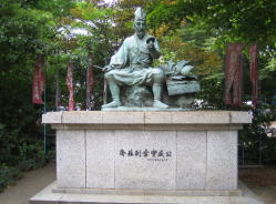 像の近くにあるサウンドモール實盛公からは、唱歌斉藤實盛を聞くことができます。