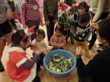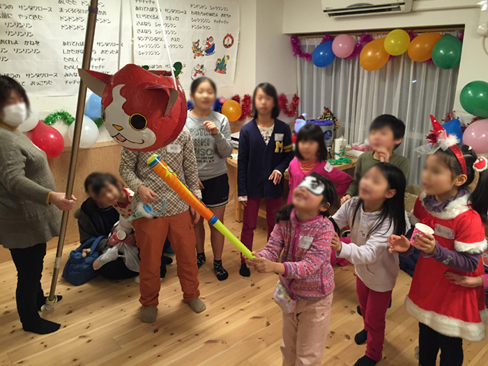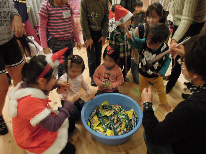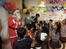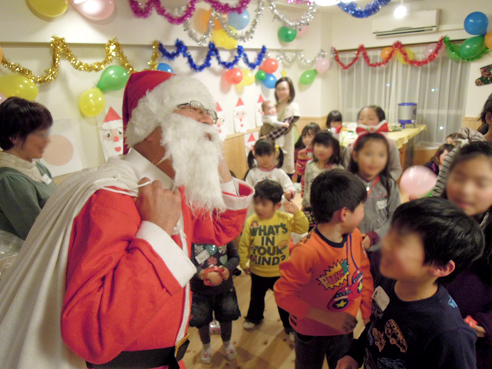 ミニゲームやビンゴ大会で盛り上がっていると、サンタさんがプレゼントを持って登場。子どもたちは終始大興奮です。